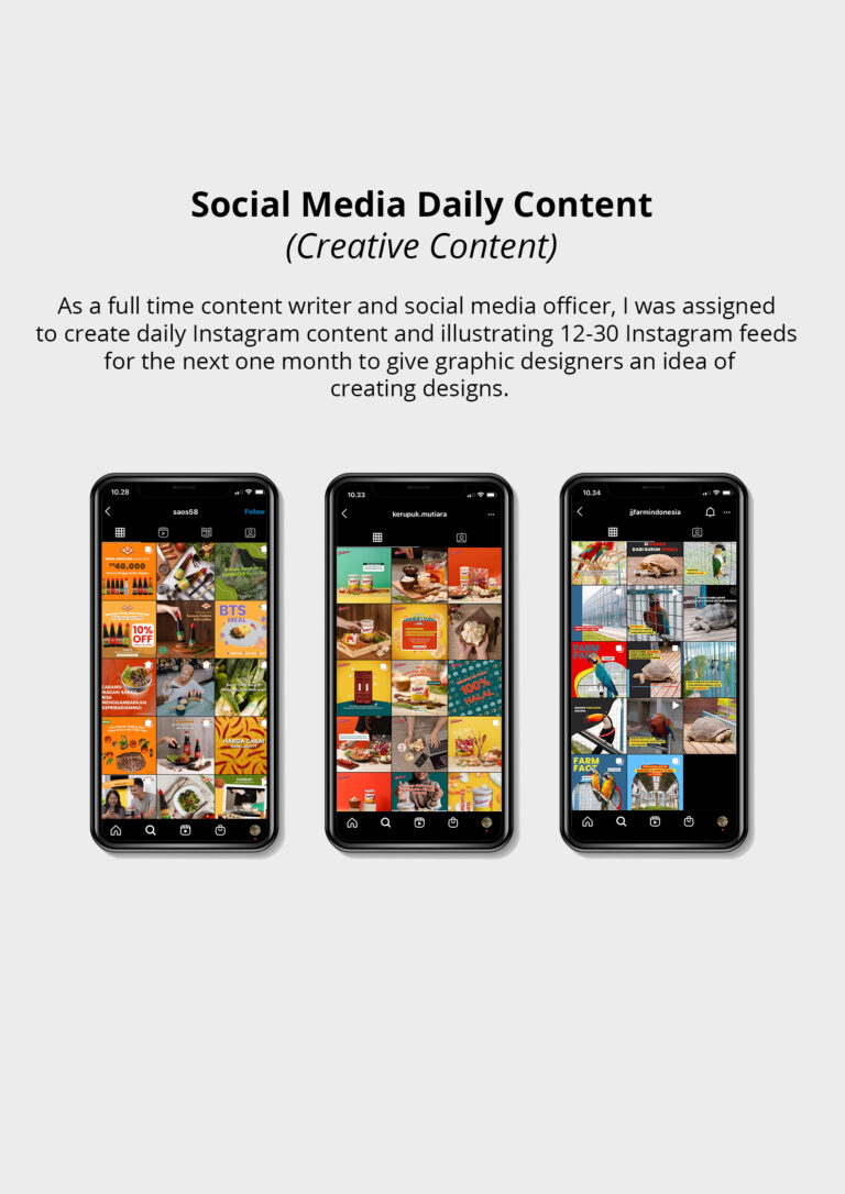 My work in managing social media content, including preparing design briefs, writing captions, creating content calendars, and publishing posts across platforms. These tasks gave me hands-on experience in maintaining brand consistency and engaging audiences through organic content.